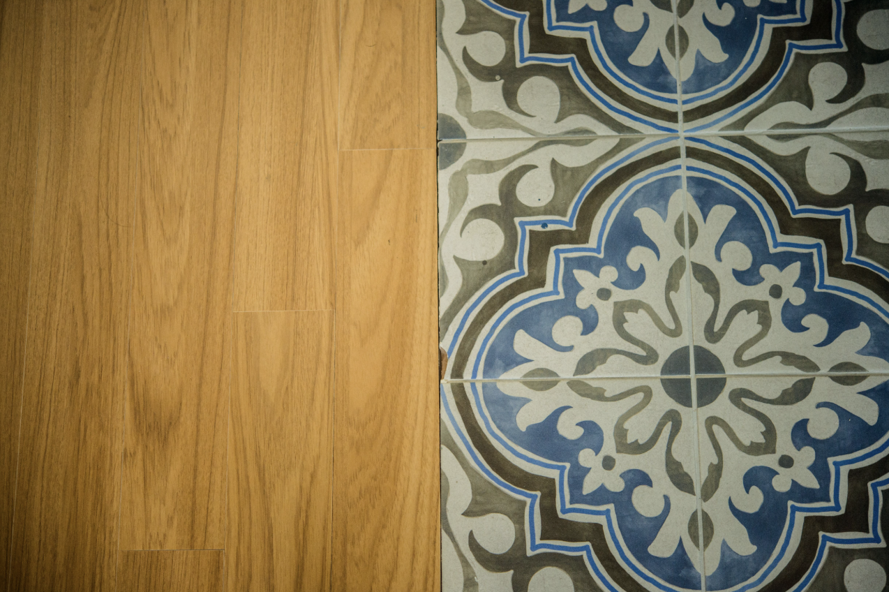 벽돌과 블루가 강렬하게 어우러진 패턴 타일,