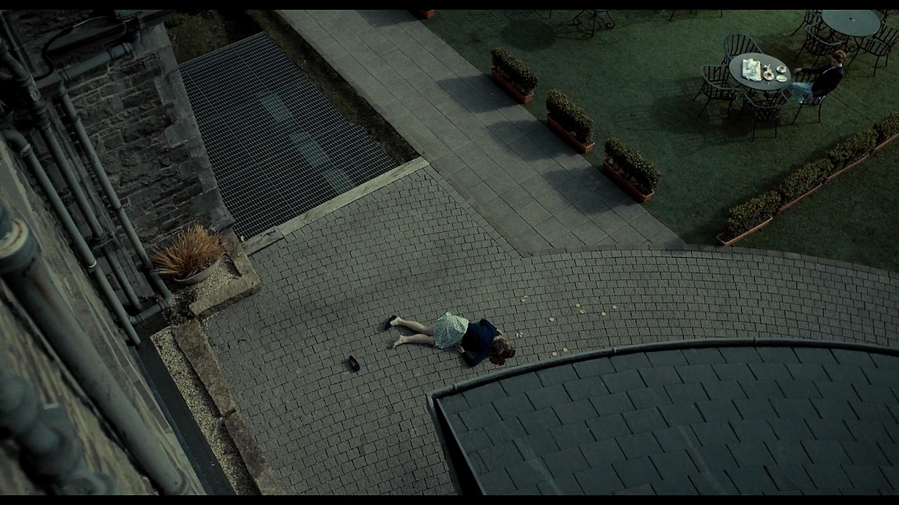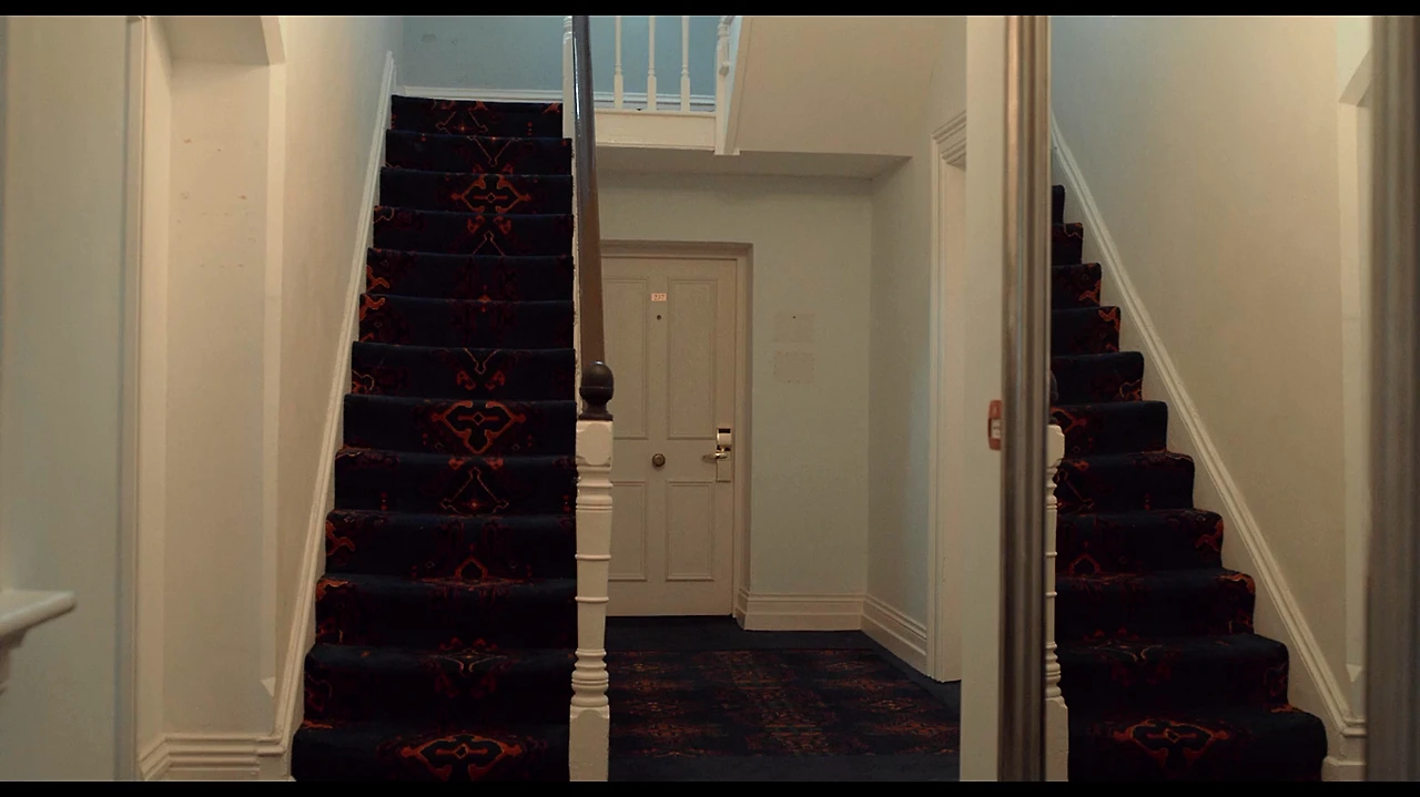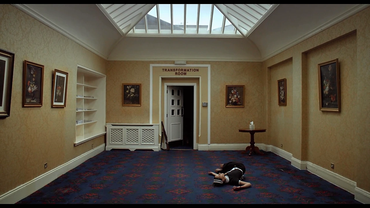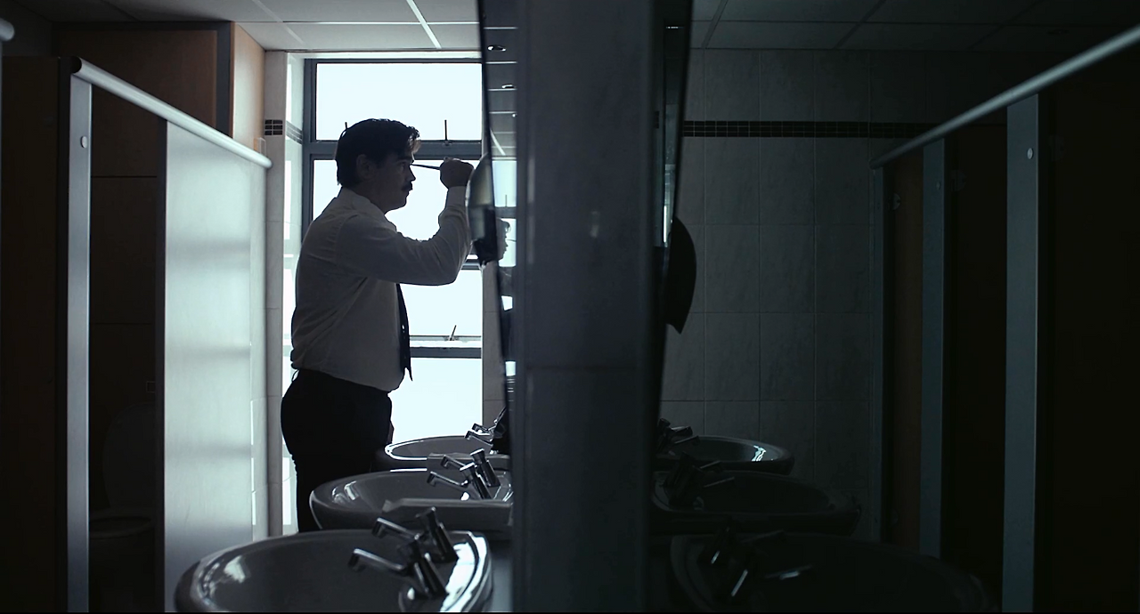 카메라 워크, 화면 구도 또한 제 역할을 한다. 대표적으로 눈에 띄게 보이는 부분이 무정한 여자에게 쫓길 때 호텔 안에서의 씬이다. 이때만큼은 모두가 눈치챌만큼 칼 같은 대칭을 보여주려고 한다. 거울을 써가면서까지 보여주려고 할 정도니, 눈치 못 채긴 힘들 것이다. 이전 호텔 장면에서도 대칭적인 구도가 보이긴 하였으나, 스토리상 남주가 호텔에서 도망가는 트리거가 되는 부분인 도망 씬에서 이 효과를 더욱 극단적으로 끌어올렸다. 호텔이 얼마나 답답하고 숨 막히는 곳인지 극적으로 표현하는 방법이다. 빨리 벗어났으면 한다. 이와 비교되게 숲에서의 구도는 (비교적) 아름답고 자유롭다. 심지어 동물들도 자유로이 돌아다닌다. 정확한 대칭 구도를 굳이 만들지 않고, 인물들도 배경의 일부인 양 작게 잡는 샷들이 있다. 각박한 호텔과 대비되는 부분이다.