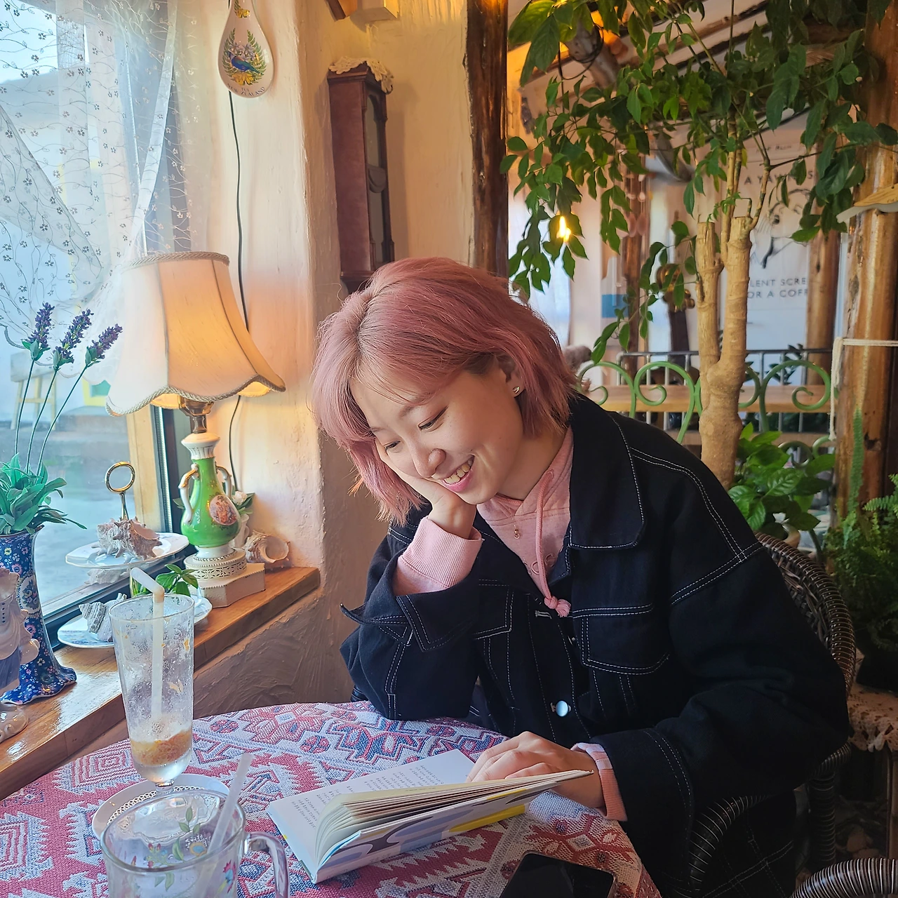 그리고 받아 든 결과는? 처음엔 어색했지만 곧잘 적응했다. 미용사 선생님마저도 염색약 바르기 전, '핑크 안 어울리실 것 같은데요? 다른 색깔 어떠세요?'라고 찬물을 끼얹었음에도 불구하고, 내 만족도는 100%였다. 분홍 머리를 처음 보는 내 친구들도, 가족들도 처음엔 무척 놀랐지만('헐!', '니가 아이돌이냐?' 등등) 핑크 머리를 엄청나게 자랑스레 여기는 나를 보고는 칭찬해주기 시작했다.