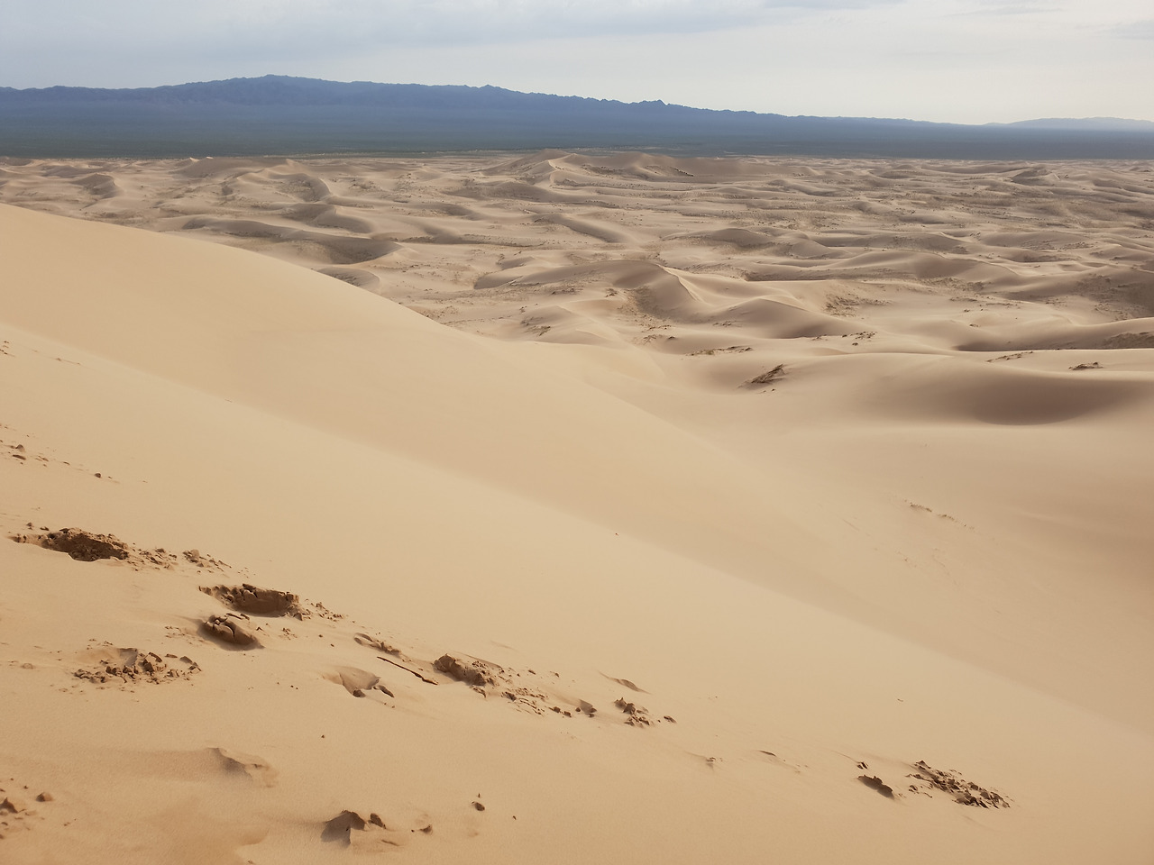 고비사막에 다녀왔다. 멀리서는 작아보였던 사막이 가까이 가니 이렇게 거대할 수가 없었다. 모래 언덕을 올라가는 일이 녹록치가 않았다. 두 손 두 발 다 사용해서 정상에 가까스로 올라보니 귓구멍에서도 모래가 흘렀다. 바람이 불면 자잘한 모래가 옷으로 덮지않은 살갗을 때려 따가웠다. 그렇게 고생해서 올라간 모래산은 그럴만한 가치가 있었다.