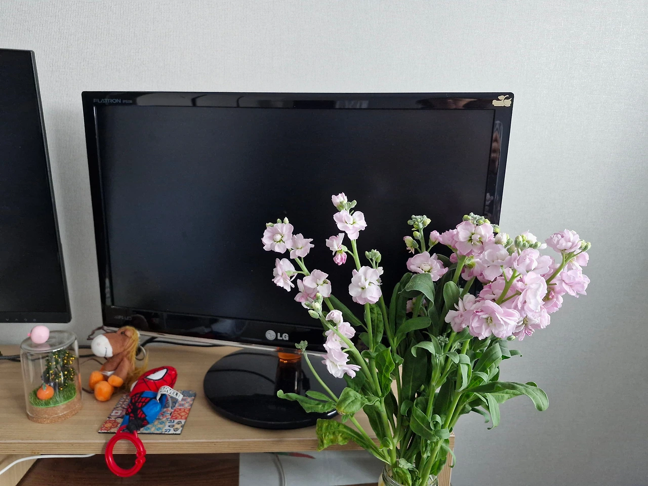 남편의 말에 나는 잠시 망설였다. 아이의 방에 꽃을 두는 것이 무슨 의미가 있을까. 아이는 꽃에는 별 관심이 없을 것이고, 며칠 지나면 물도 갈지 않은 채 말라버릴 게 뻔했다. 그래도 남편의 제안이 이상하게 마음에 걸려, 작은 유리병에 꽃을 나누어 꽂았다. 아이의 책상 위, 모니터 옆에 두었다.