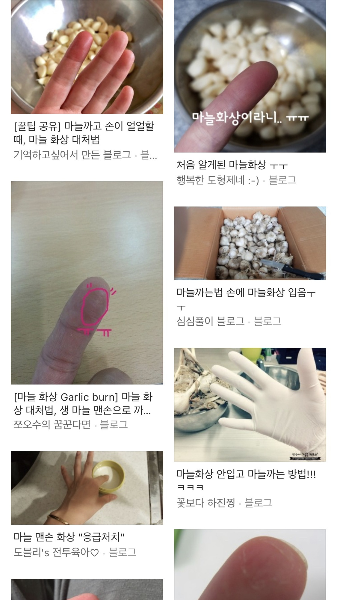 혹시나 하는 마음에 검색창을 열어 ‘마늘 화상’을 검색해보았다. 그런데 이럴 수가!
