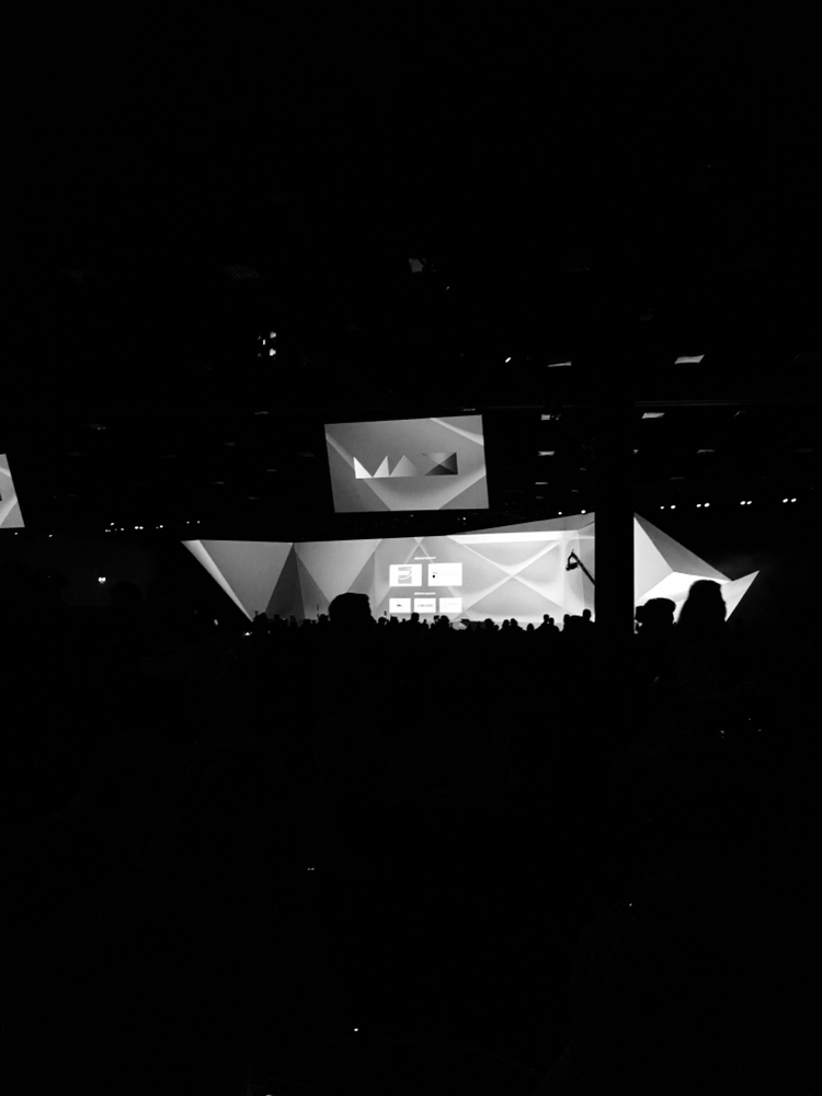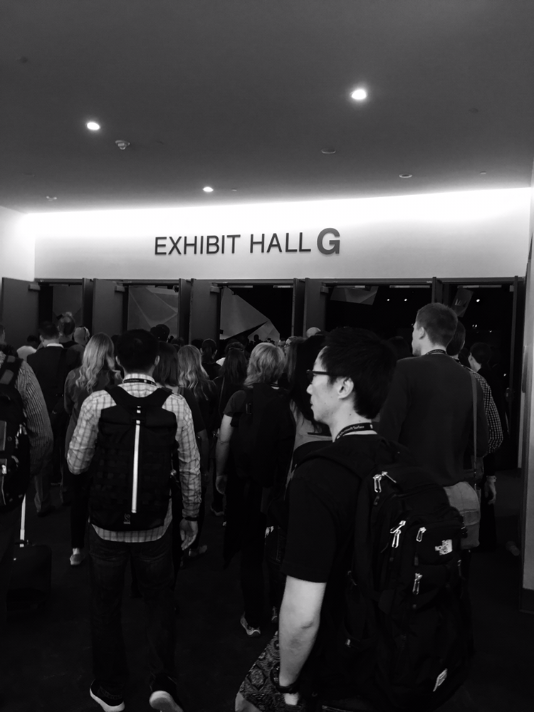 우린 다행히도 기다리는 사람들을 뒤로 하고 특권을 좀 누렸다. 미리 뱃지를 받아서 일까? 키노트 행사장으로 들어서는게 스케일에 조금 놀랐다. 이게 미국이구나.