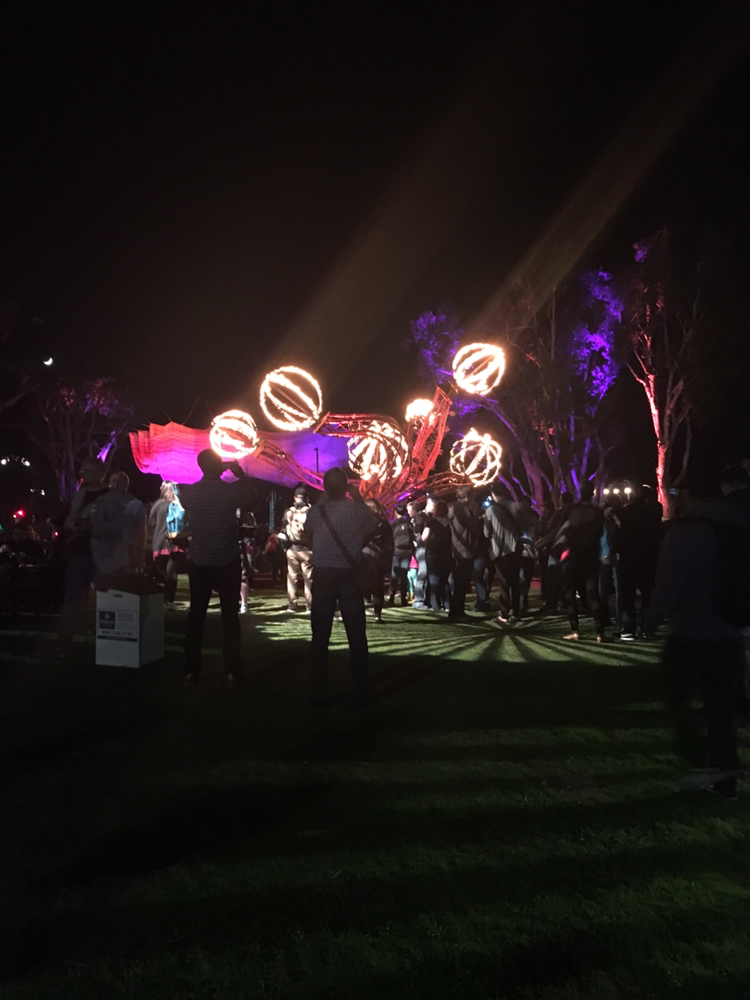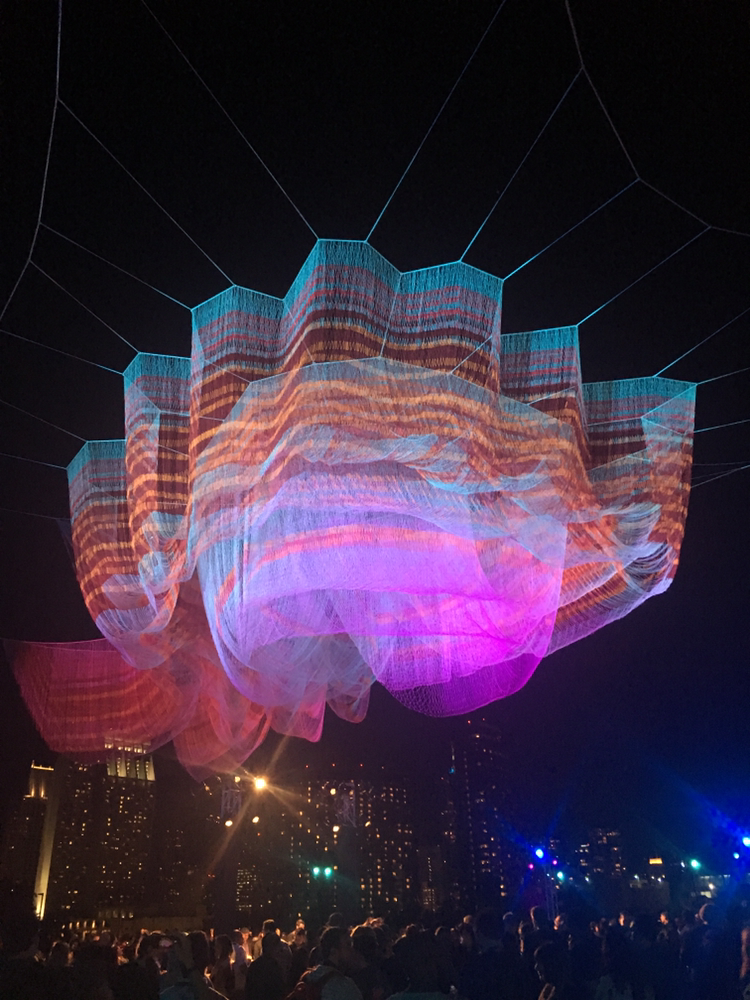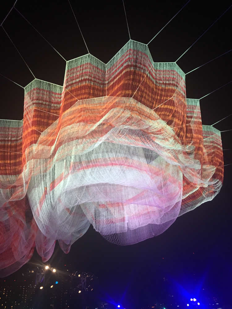 행사 한쪽에 자넷 에나힐 작품이 떡하니 자리 잡고 있었다. 강연을 듣고 나서 보니 그녀의 오랜 작품에 대한 열정이 느껴지는 듯 했다. 작품은 야외 바의 천정을 감싸고 있었다. 작품이라고 그냥 한곳에 덩드러니 있는것이 아니라 우리 바로 옆에 존재하는 것이 좋아 보였다.
