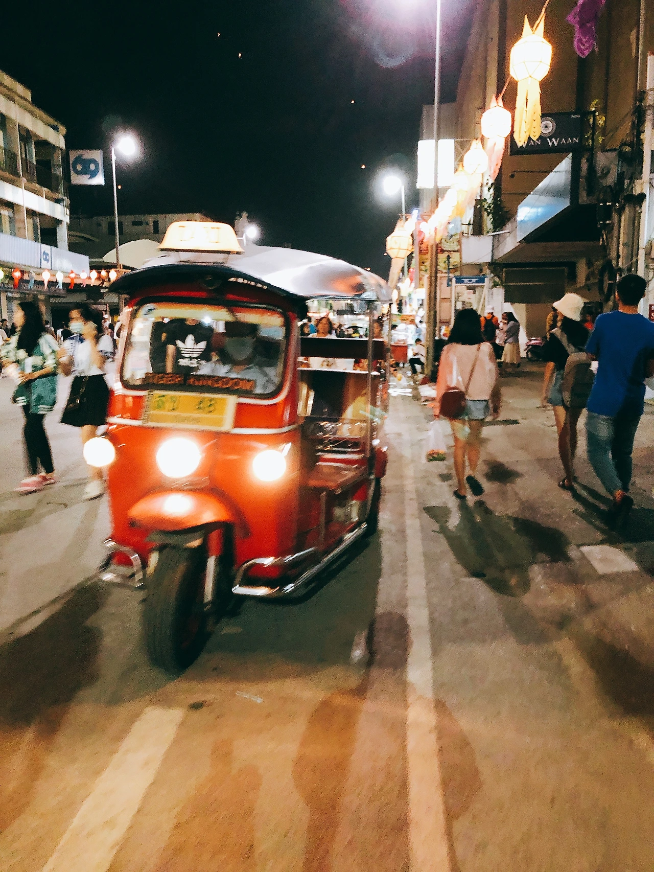 나는 저녁시간에 이 축제에 참가하려 출발했다. 나와 같은 마을일까? 많은 사람들이 나와 같은 곳으로 향했다. 차를 타고 쏭태우를 타고 오토바이를 타고 많은 사람들이 이동했다.