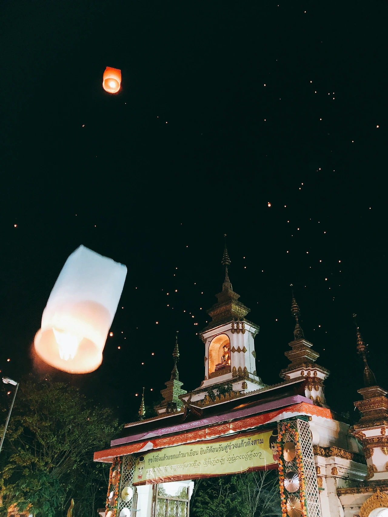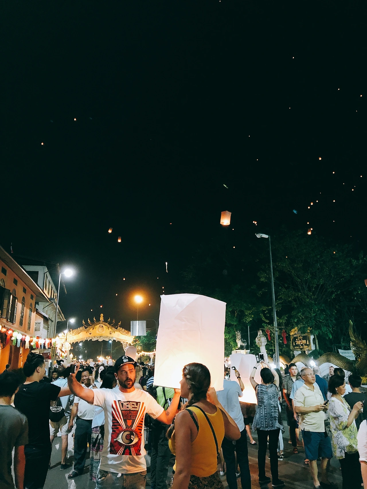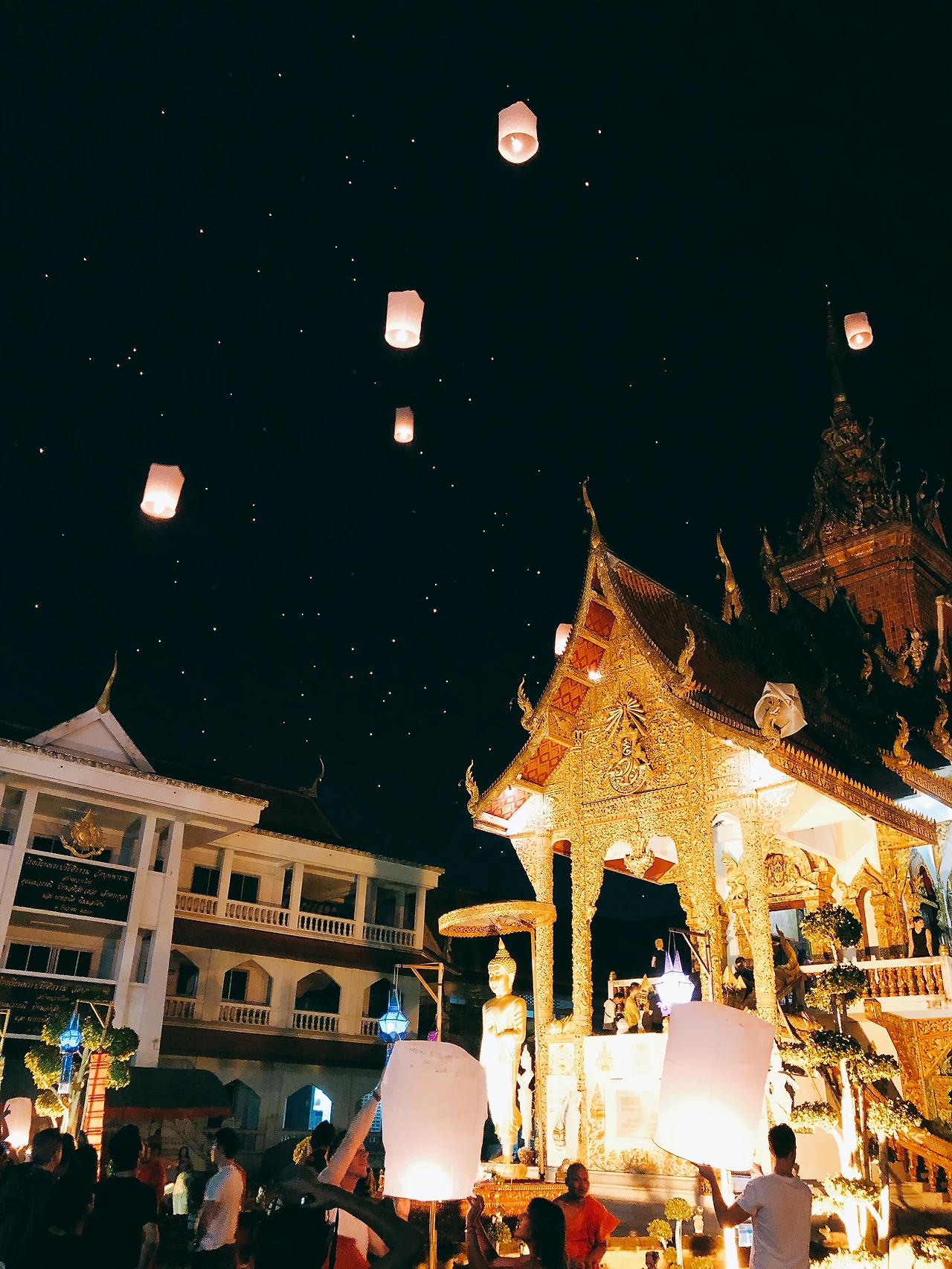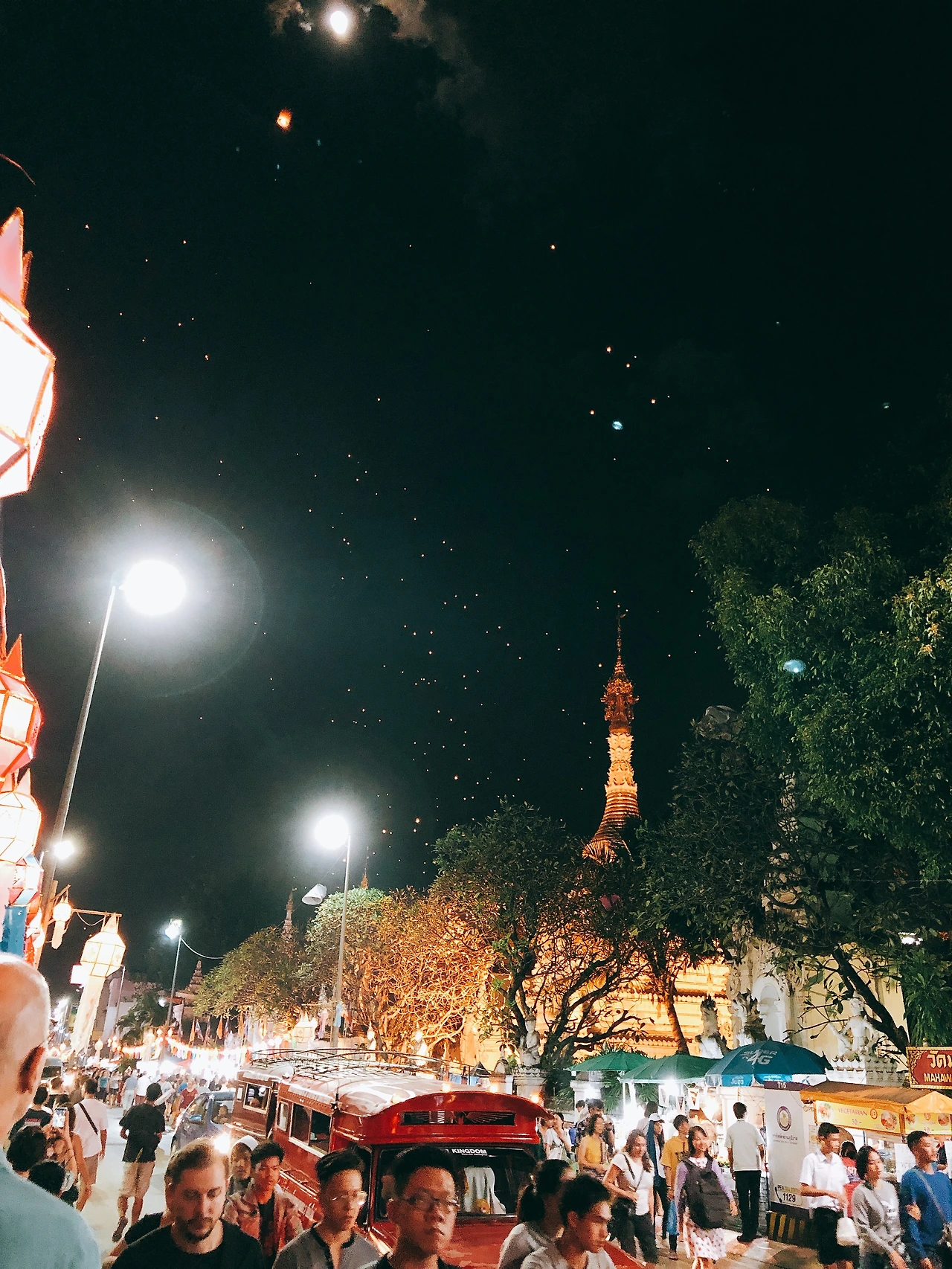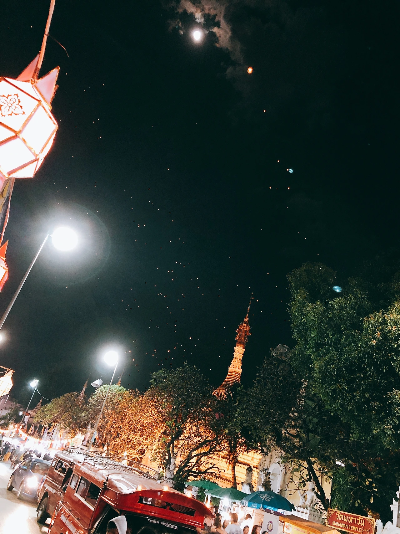 이곳저곳에서 사람들은 등불을 날린다. 등불 하나에 5,000원 정도? 에 구입할 수 있고 거리 어디서나 이 등불을 하늘로 날릴 수 있다. 곳곳의 거리과 사찰안에서 등불이 하늘로 날아오르고 있었다.