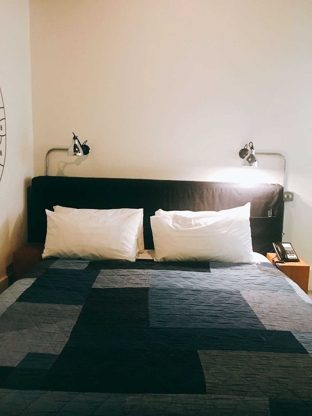 호텔의 크기는 크지 않았다. 전체적인 규모도 그랬지만 호텔 룸 또한 작은 사이즈였다. 하지만 깔끔하게 정돈된 인테리어는 세련됨과 포근함을 동시에 전달해 주고 있었다. 블랙과 화이트 그리고 우드가 잘 어울리게 디자인되어 있었다.