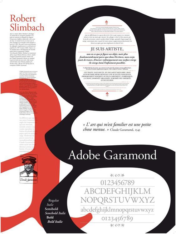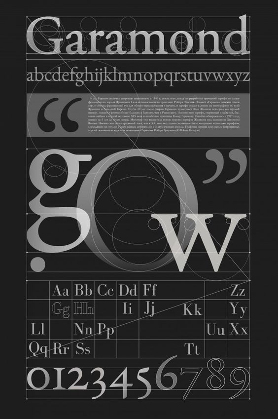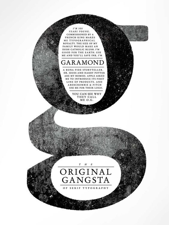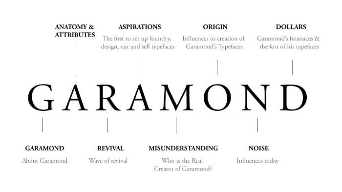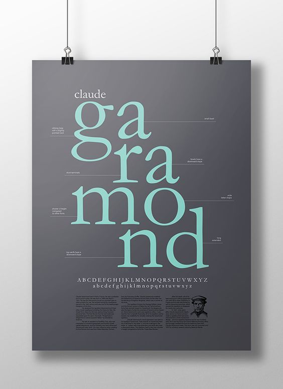 16세기 Claude Garamond에 의해 디자인되었으며, 많은 디자이너들이 재해석하고 있다.