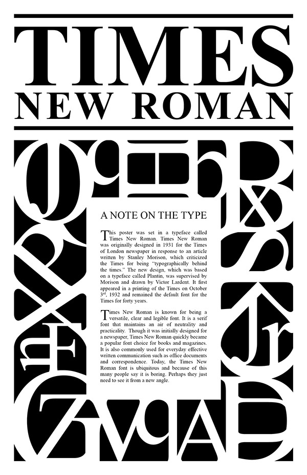 1931은 영국의 더 타임스의 의뢰에 Victor Lardent에 의해 탄생되었다. 기본 서체에 들어있어 그 소중함을 잊고 있겠지만 실제로 매우 오랜 기간 동안 많은 디자이너가 사용한 세리프 폰트이다.