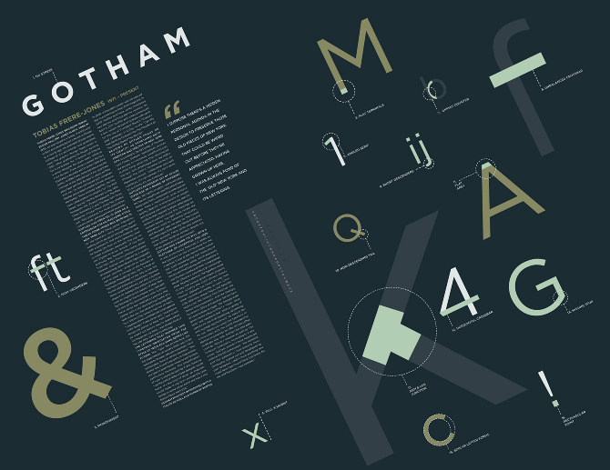 2000년에 미국의 타입 디자이너 Tobias Frere-Jones에 의해 디자인되었다. 아직 젊은 나이의 이 폰트는 최근 많은 디자이너들에게 사랑받고 있다. 깔끔하고 세련된 느낌을 전달할 수 있다.