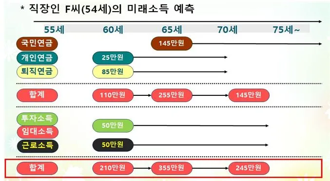 그림1. 직장인 F씨의 미래소득 예측표(연금소득)