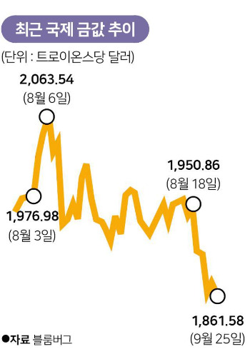 하지만 8월 중순이후 금값이 떨어지고 있는 것은