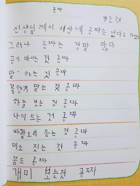 박호현군이 쓴 <공짜>라는 시입니다.