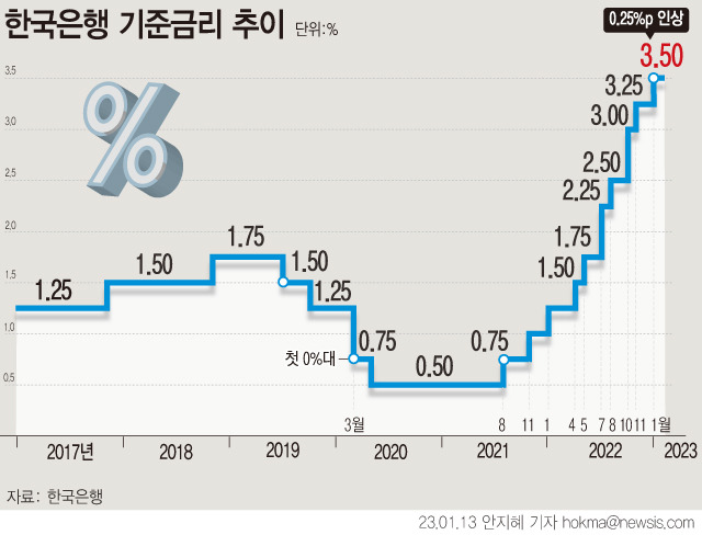 그림. 한국은행 기준금리 추이(2017년~2023년 1월)