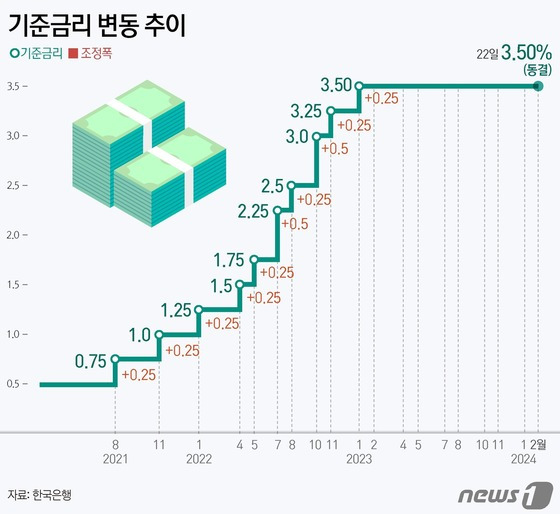 기간으로 따지면 2023년 1월 3.5%가 된 이후로 무려 1년 1개월간 계속 고정입니다. 뭐 동결이 꼭 나쁜 것만은 아닙니다. 상황에 따라 올릴 수도 혹은 내릴 수도 그리고 지금처럼 그냥 지금 이대로 쭉~ 갈 수도 있는 거죠. 마치 우리 사랑 이대로~ 같은 느낌으로요.