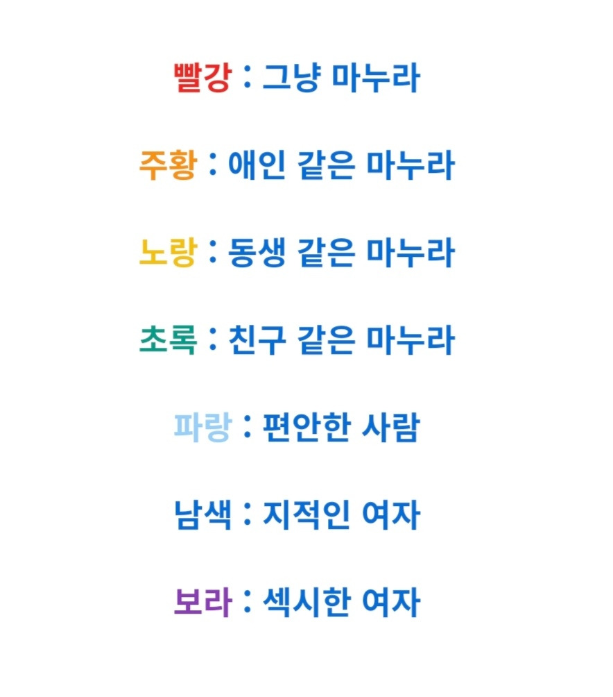 남편에게 무지개색깔로 아내를 표현해 보라는
