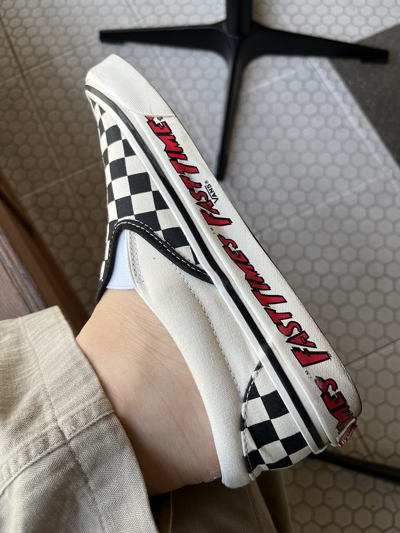 그리고 또 하나 역사적인 사건이 일어난다. 반스가 세계적인 기업이 되는데 크게 일조한 “리치몬드 연애소동 - 페스트타임”의 영화 시사회에서 반스의 창립 2세대인 스티브 반 도렌은 아웃솔에 ”FAST TIME”을 새긴 체커보드를 무료 배포한다. 반 도렌의 아들이 하얀 슬립온에 그렸던 바둑판 모양의 신발은 그렇게 세기를 뛰어넘는 마스터피스가 되었다. 반스의 시대를 열어젖힌 이 신발의 오리지널 ver은 상품에 동봉된 스티커조차 상상할 수 없는 가격에 거래될 정도로 반스 역사의 상징이 되었다.