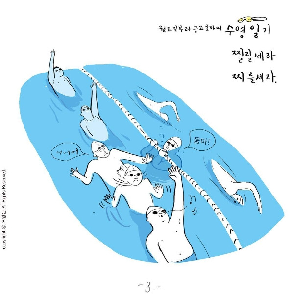 인스타그램에서는 오영은 님의 수영 그림(인스타툰)을 즐겨 본다. '수영 일기'라는 그림 에세이도 펴낸 일러스트레이터다.