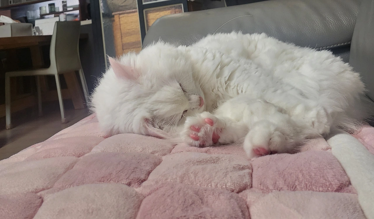 이브는 우리 집 고양이다. 흰색 페르시안이고 동물병원에 가면 미묘라며 주변에 사람들이 몰려들었다.