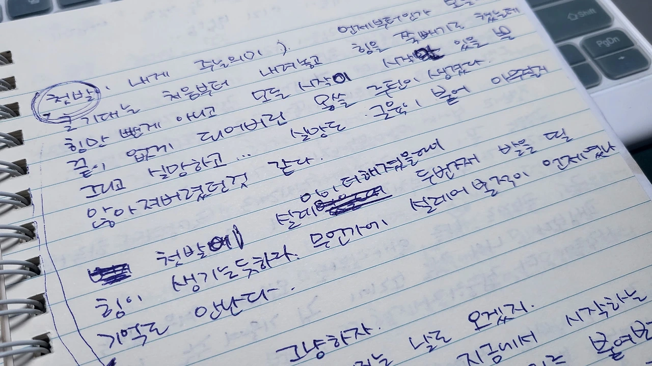 한 줄 쓰고 단어 하나 남기고 다 지워버리기를 무한반복할지도 모르지만 가만히 있으면 아무것도 일어나지 않으니 단어 하나라도 남기려 한다. 그러니 쓰자, 써 보자. 뭐라도.....