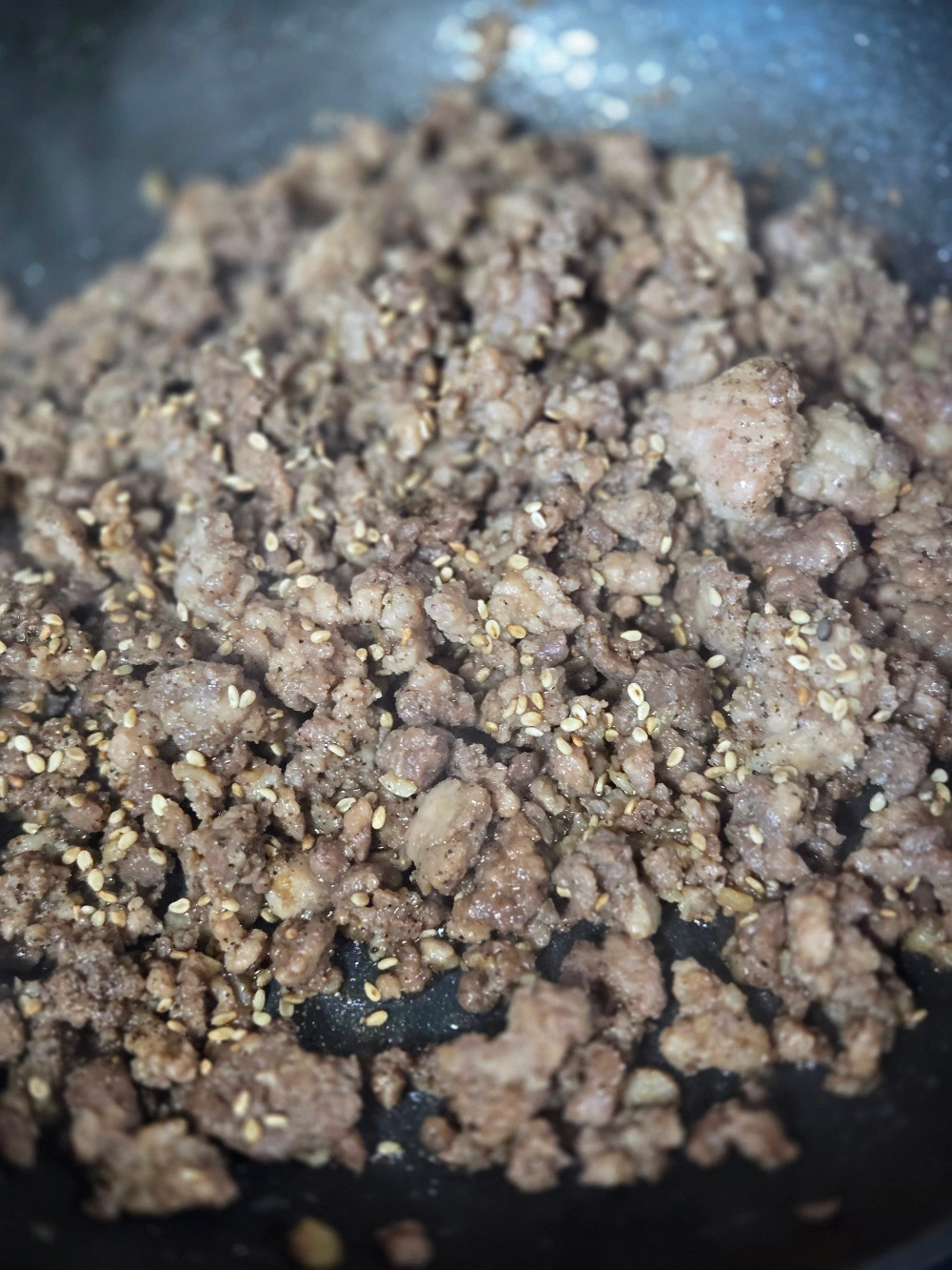 아이들이 어릴 적 방학이면 갈아 놓은 돼지고기와 소고기를 소분해 냉동해 두고 여러 음식에 활용했다. 특히 고기 소보로는 비빔밥 고명으로 이만한 게 없다. 무나물과 고기 소보로를 듬뿍 올린 비빔밥에 참기름을 아끼지 않은 특제 양념장을 더하니, 아들은 오늘도 엄지 척이다.