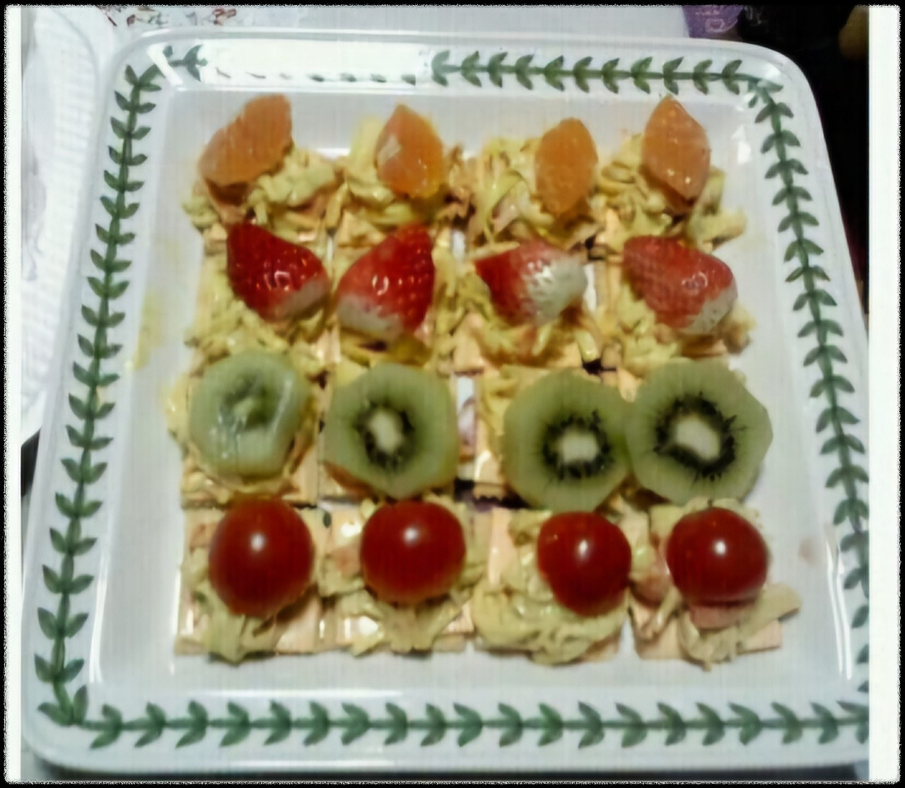 나눠준 과일과 치즈를 꽂이에 꽂고, 비스킷에 이미 만들어진 토핑을 올려 보는 게 전부였다.