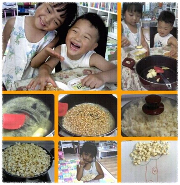 김이 모락모락 나는 팝콘을 먹고 남는 걸로 그림을 그려 꾸미는 활동까지 해 보았다.