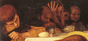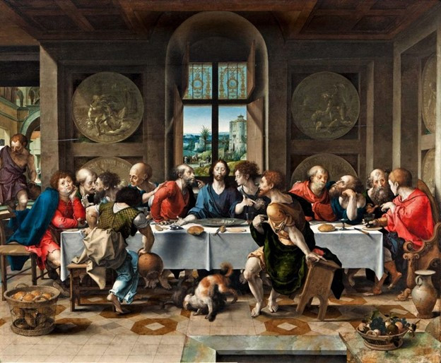 화가에 따라 이 만찬의 메뉴가 다릅니다. 아주 풍성한 테이블이 있는가 하면 이 그림처럼 거의 식사한 흔적이 없는 것 같은 테이블이 올려지기도 합니다.