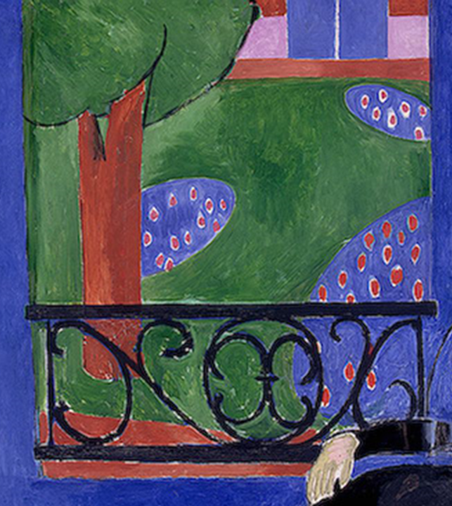 인물 사이에 절제되어 묘사된 정원을 볼까요? 비록 등장 인물들은 암울한 침묵속에 있지만 밖의 정원은 밝고 건강하고 선명하며 아름답기까지 합니다. 색의 마술로 그 쪽의 싱싱한 공기가 전해오는 것 같습니다. 안쪽과는 전혀 다른 세상입니다.