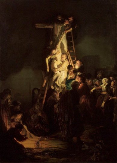 이런 십자가 주위는 마치 시골 장터 같습니다. 인물들의 다양한 포즈 속에 심어 놓은 힘이 움직이며 그 결과는 주제를 부각시키는 한 편의 드라마로 연출됩니다. 그 극적 효과의 정점에는 나무에 달린 예수입니다. 회화 예술을 영상의 드라마로 감상해 보시는 경험을 이 그림에서 느껴 보시기 바랍니다.