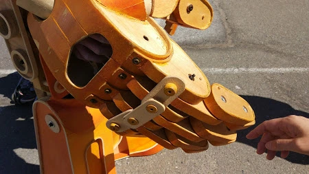 아이들을 위에 태우고 다녔다. 관절 하나하나가 움직였는데, 어떻게 조립했는지 들여다보다가, 따로따로 어떻게 움직이게 했는지 궁금해서 물어봤음.