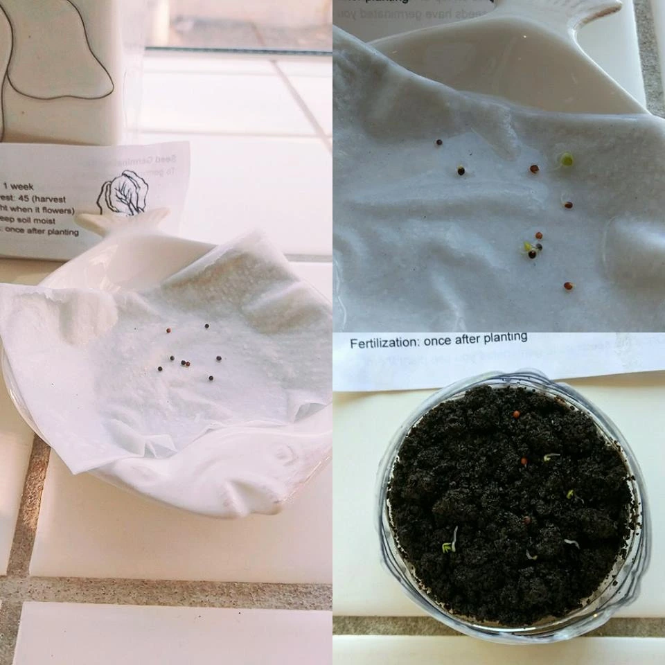 더 자랄 때까지 페이퍼타월 위에 놔두려고 했는데 동네가 너무 건조해서 물이 금방 말라서 흙으로 옮겨주는게 좋겠다고 생각했다. 본격 가드닝 시작!