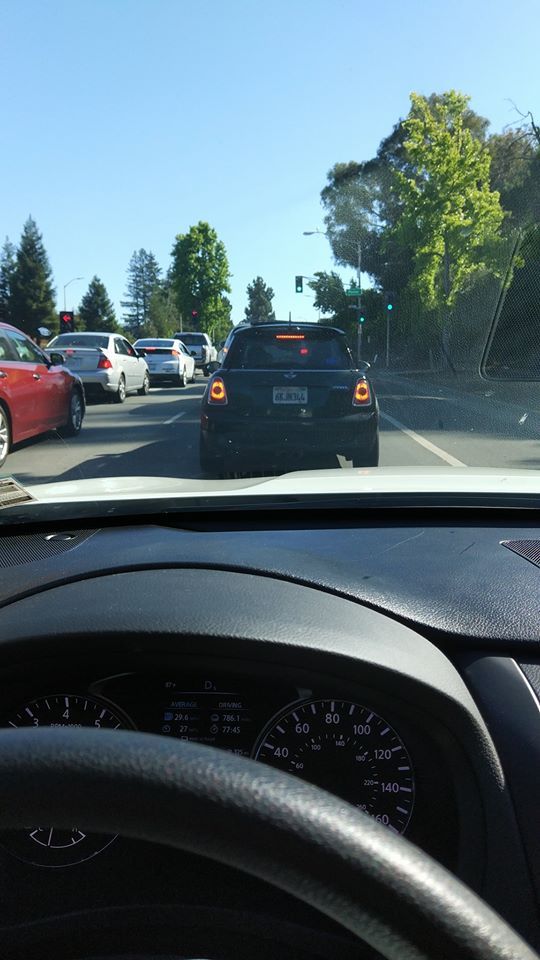 우리나라에선 최대한 앞차와 간격을 붙이라고 가르친다. 안그러면 옆차가 끼어든다고... 미국에선 사진과 같이 최소한 앞 차의 뒷바퀴가 보일 정도의 간격을 유지한다. 달릴 때도 차간 거리를 멀찍이 유지하여 끼어들기도 용이한 편.