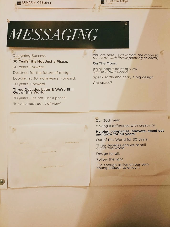 제품 디자인에 특화된 디자인 회사 Lunar, 곳곳에 포트폴리오를 장식해두었다. 디자인 회사들은 작업 산출물이 저런 방식으로 정리된다.