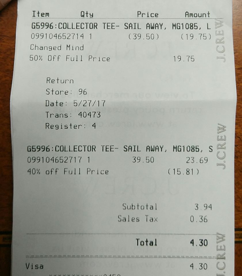 영수증을 다시 보니 처음 산 옷은 환불하고, 오늘 다시 구매한 것으로 되어있더라.