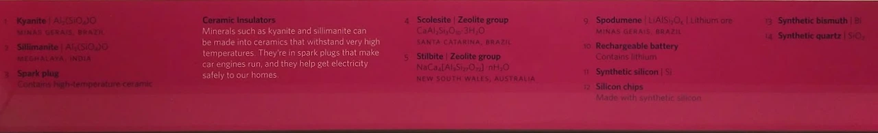 또, 각각의 광물은 어떤 원소인지, 우리가 흔히 보석이라고 부르는 것은 어떤 원소가 화합하여 어떤 원리로 만들어진 것인지도 알 수 있었다.