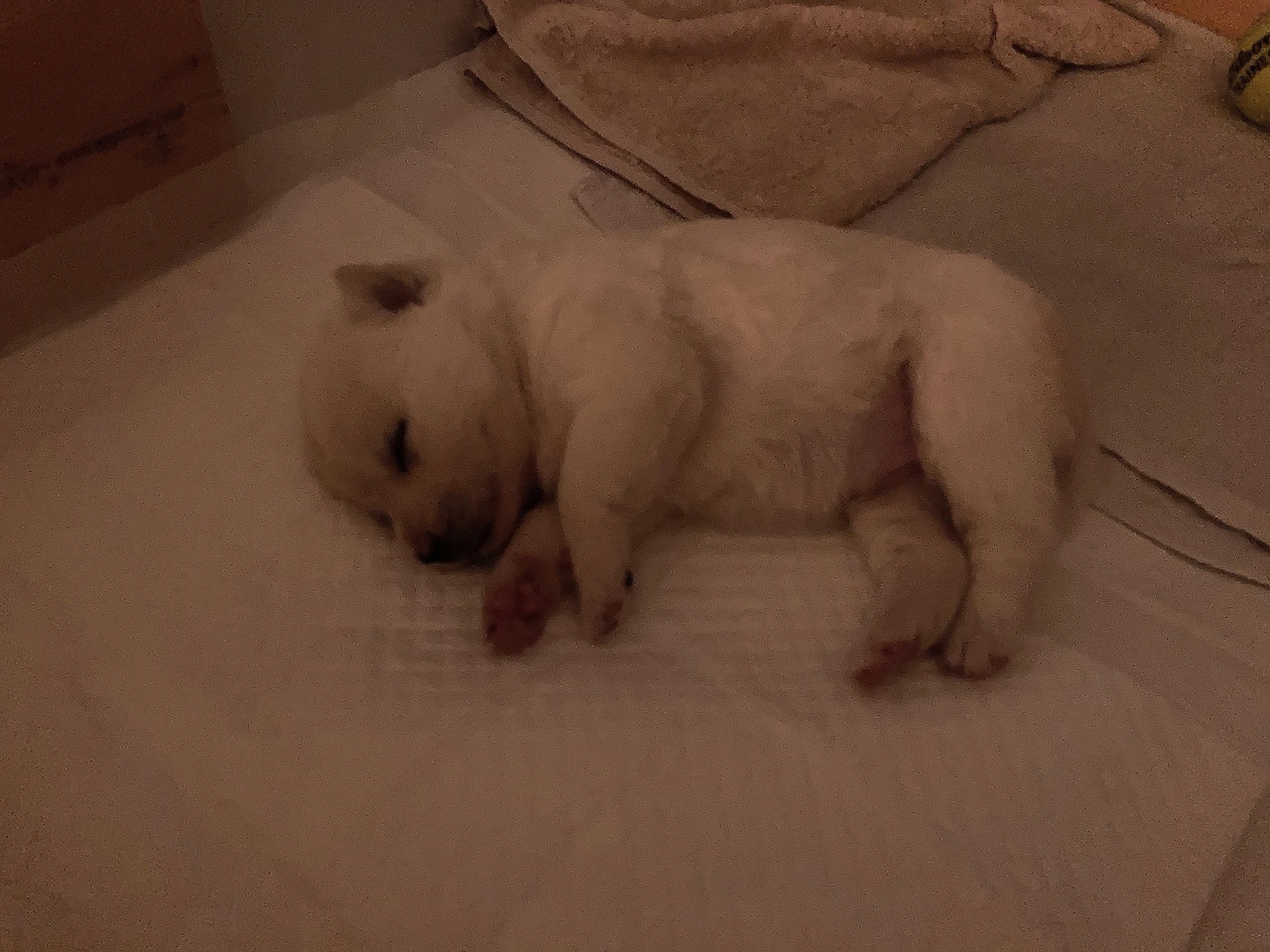 밤새 잠을 못잤다. 강아지가 자다 깨서 낑낑대거나 우오오오~ 하는 소리를 거의 한시간 주기로 낸다. 엄마랑 형제들이랑 같이 지내다가 갑자기 떨어져서 그런가 싶어서 수건에 둘둘 말아서 안고 있다가 옆에 안고 누웠다. 그랬더니 곧 잔다. 낑낑대지 않고 잘 잔다.
