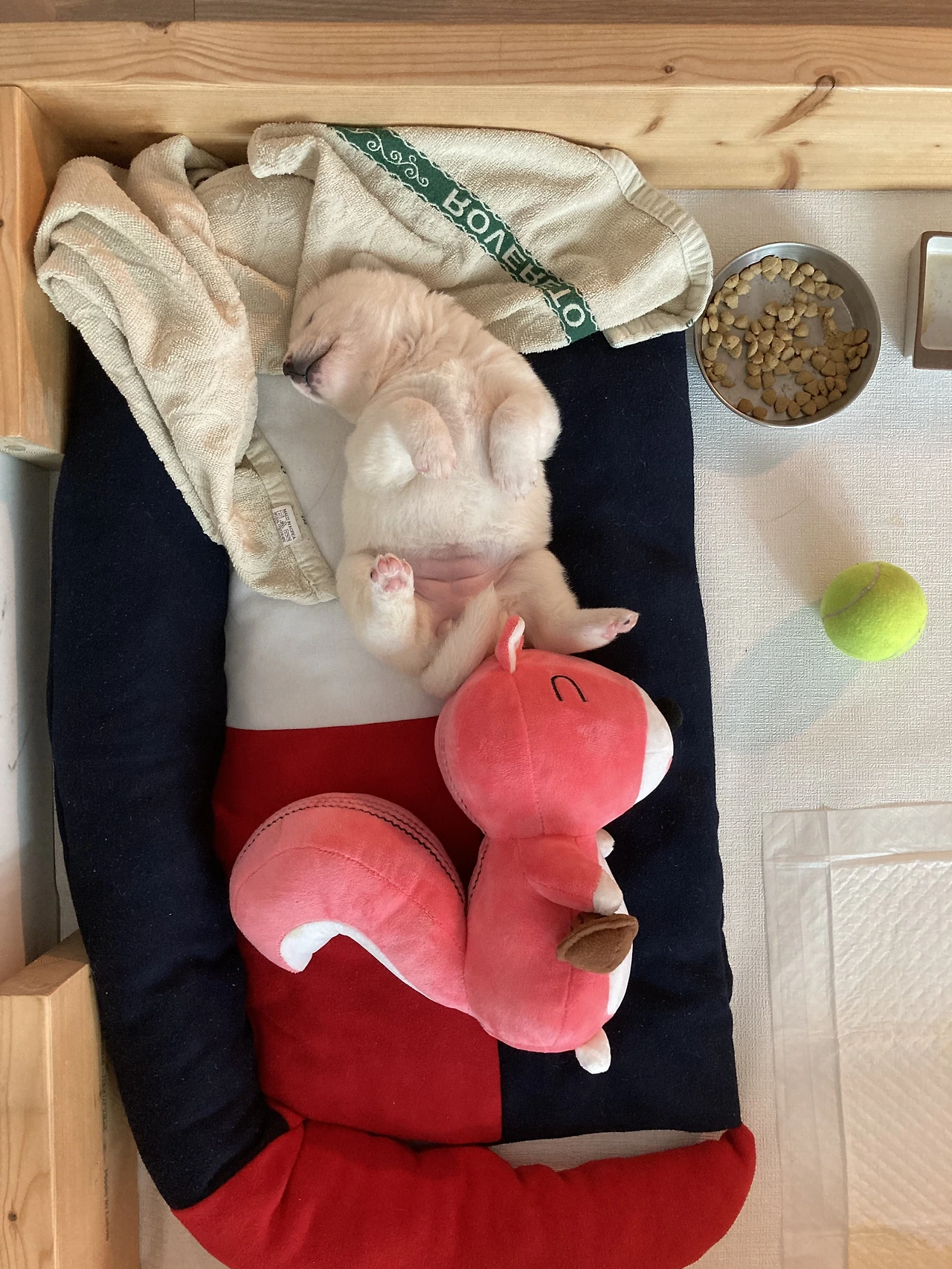 놀다가 집에 들어가더니 뻗어서 잔다. 방석 위에서 잘 자더니 이리 뒤척 저리 뒤척 하다가 배변 패드 위에 반쯤 걸쳤네.. 나갔다 오니 울타리 입구에 걸터듬하게 쉬야를 해놨길래 배변 패드를 깔아주었다.