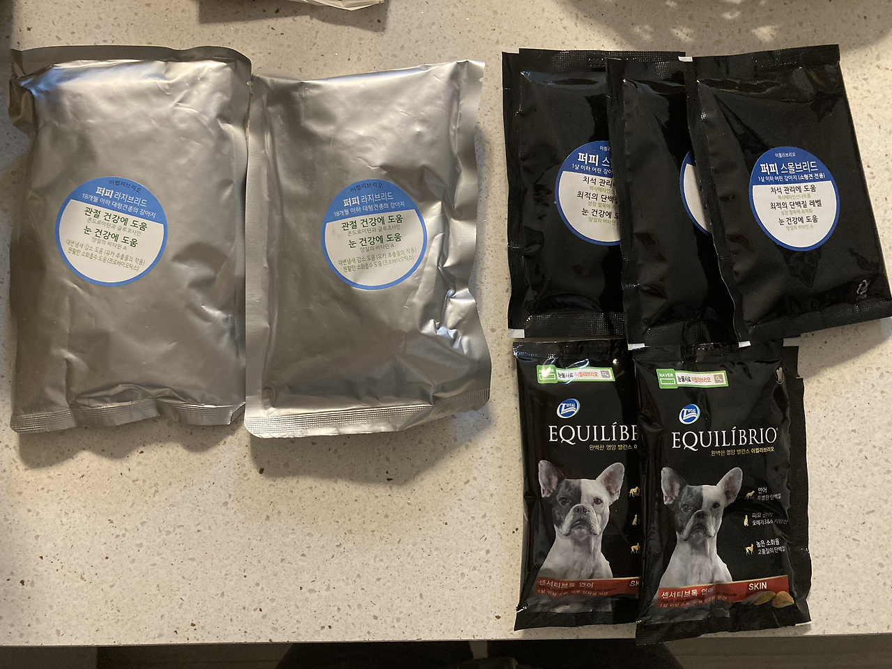 아래는 내가 주문했던 퍼피용 샘플 사료들.
