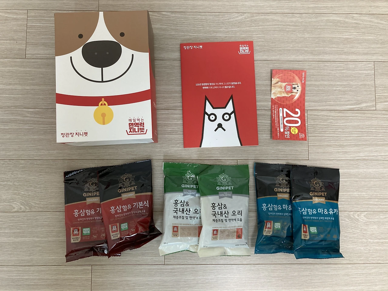 추가) 간식으로 주고 있는데 홍삼 냄새가 많이 난다. 잘 먹는다. 똥도 좋음.