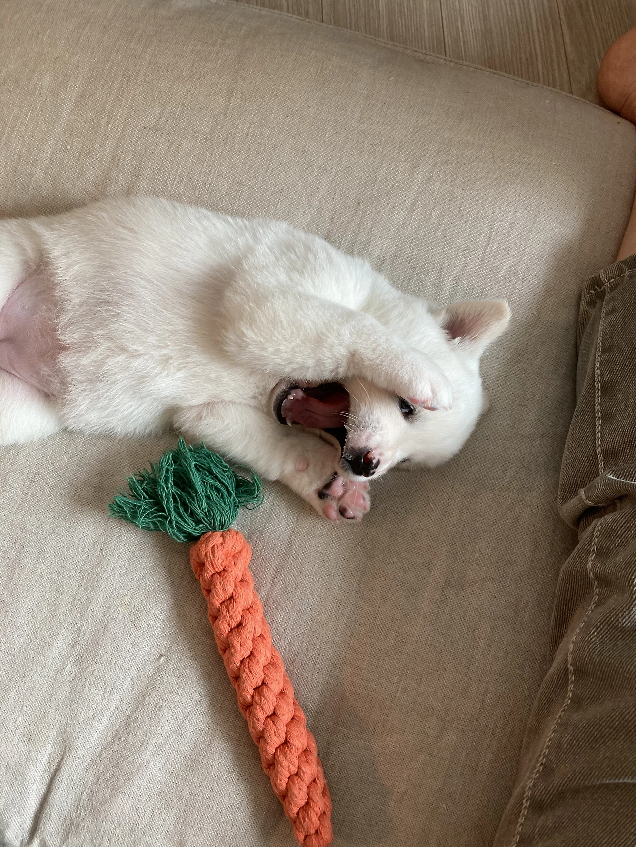 내가 다가가도 선뜻 오질 않는다. 당근으로 살살 놀아주는데 뭔가 '내가 지금 그럴 기분은 아니지만 엄마가 놀아달라니까 내가 놀아줄게' 같은 느낌이랄까....