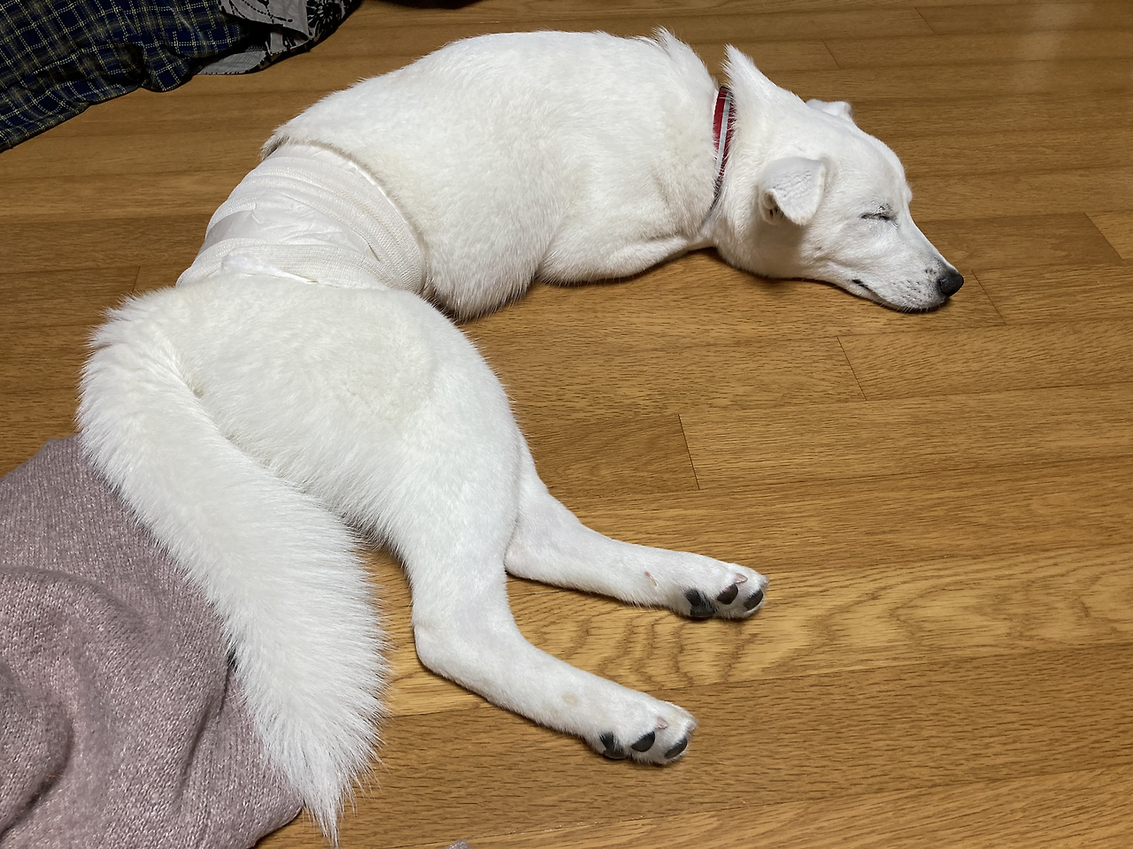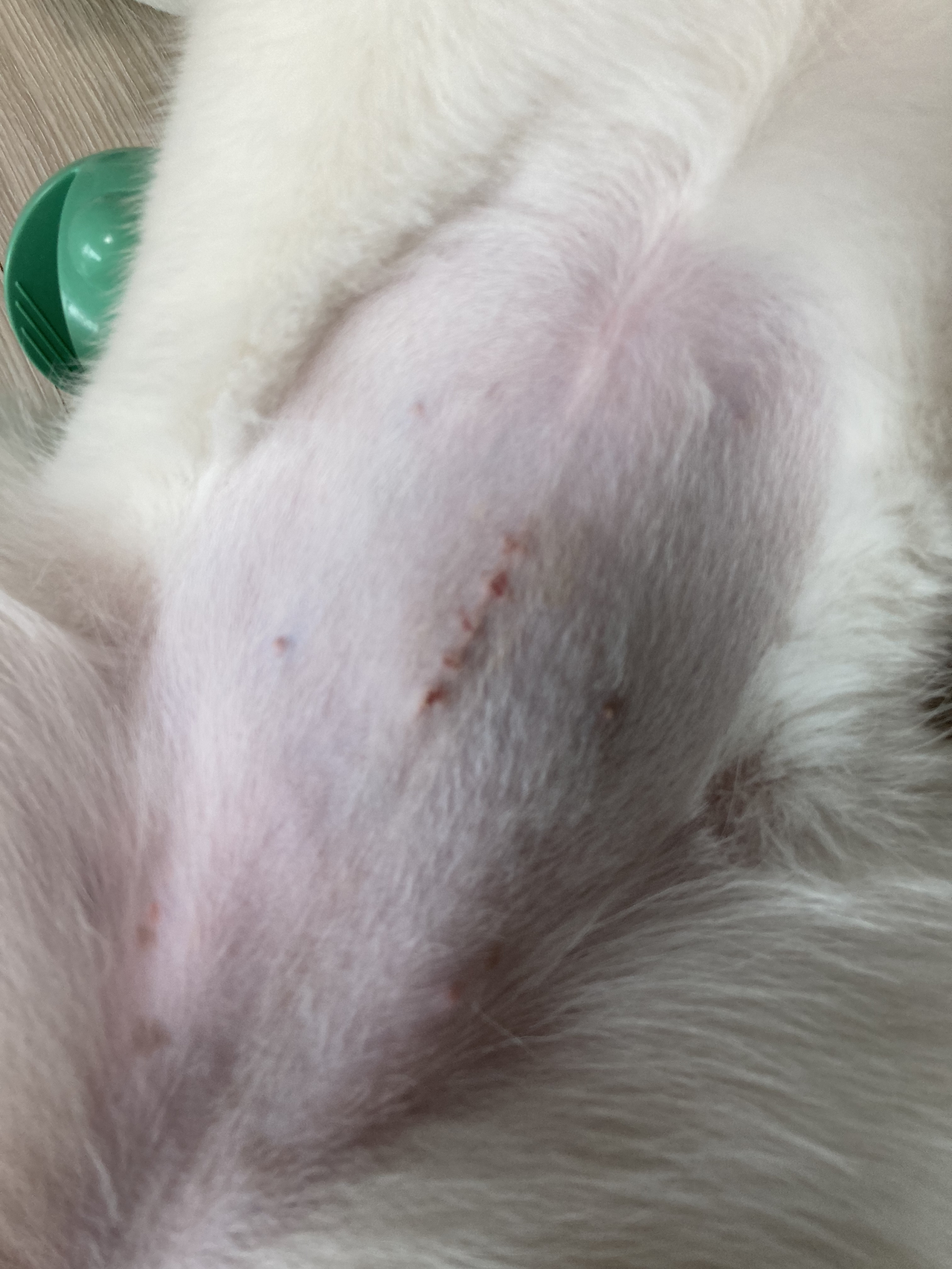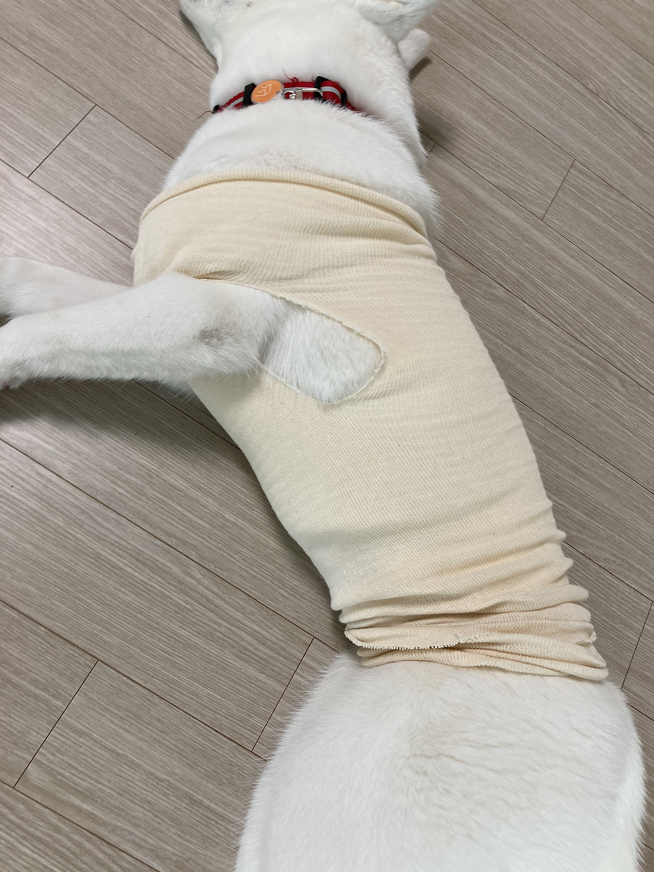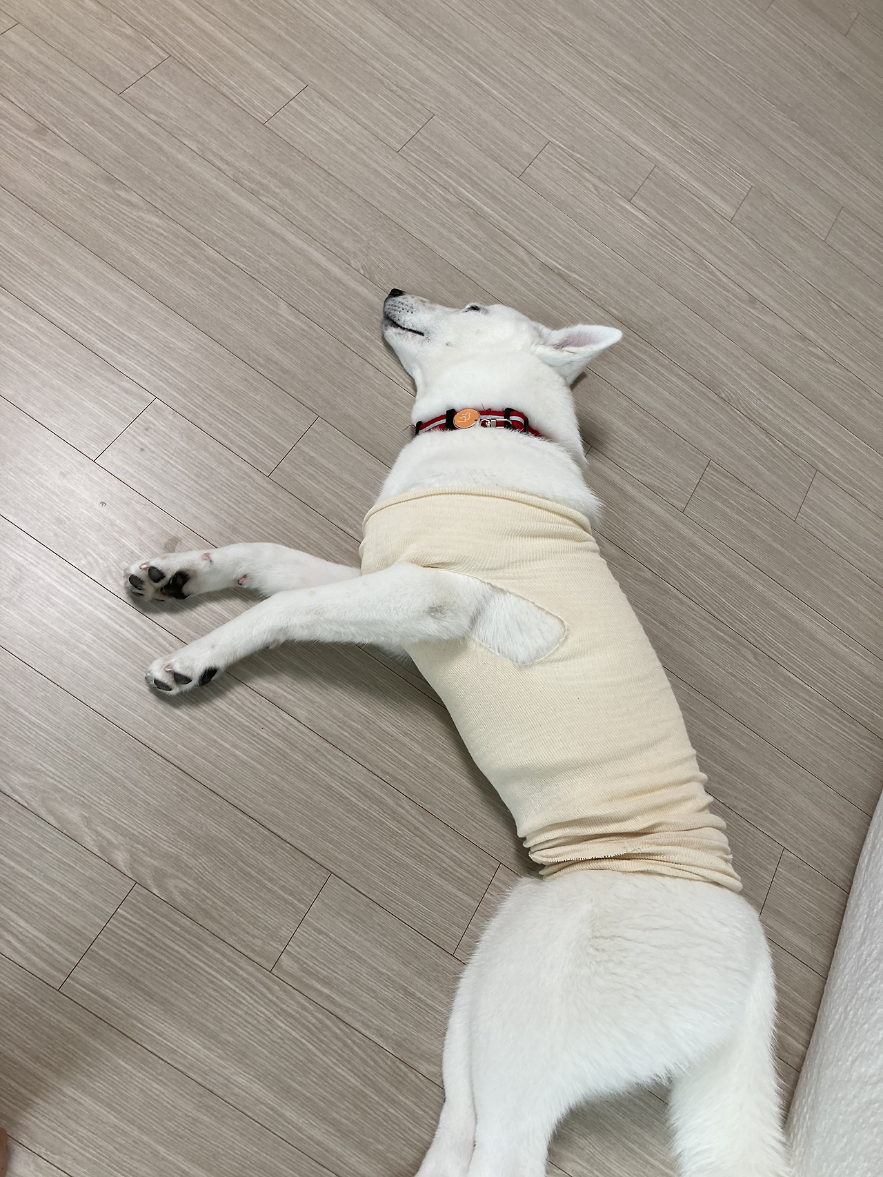 그러고 보니 원장님이 수술하려고 배의 털을 밀고 보니 배가 너무 깨끗해서 신기했다고 하시던데 정말 새하얗네... 보통 강아지 배에 반점들이 많던데 사월쓰 배에는 그런 반점들이 없다. 아기 피부 같아..