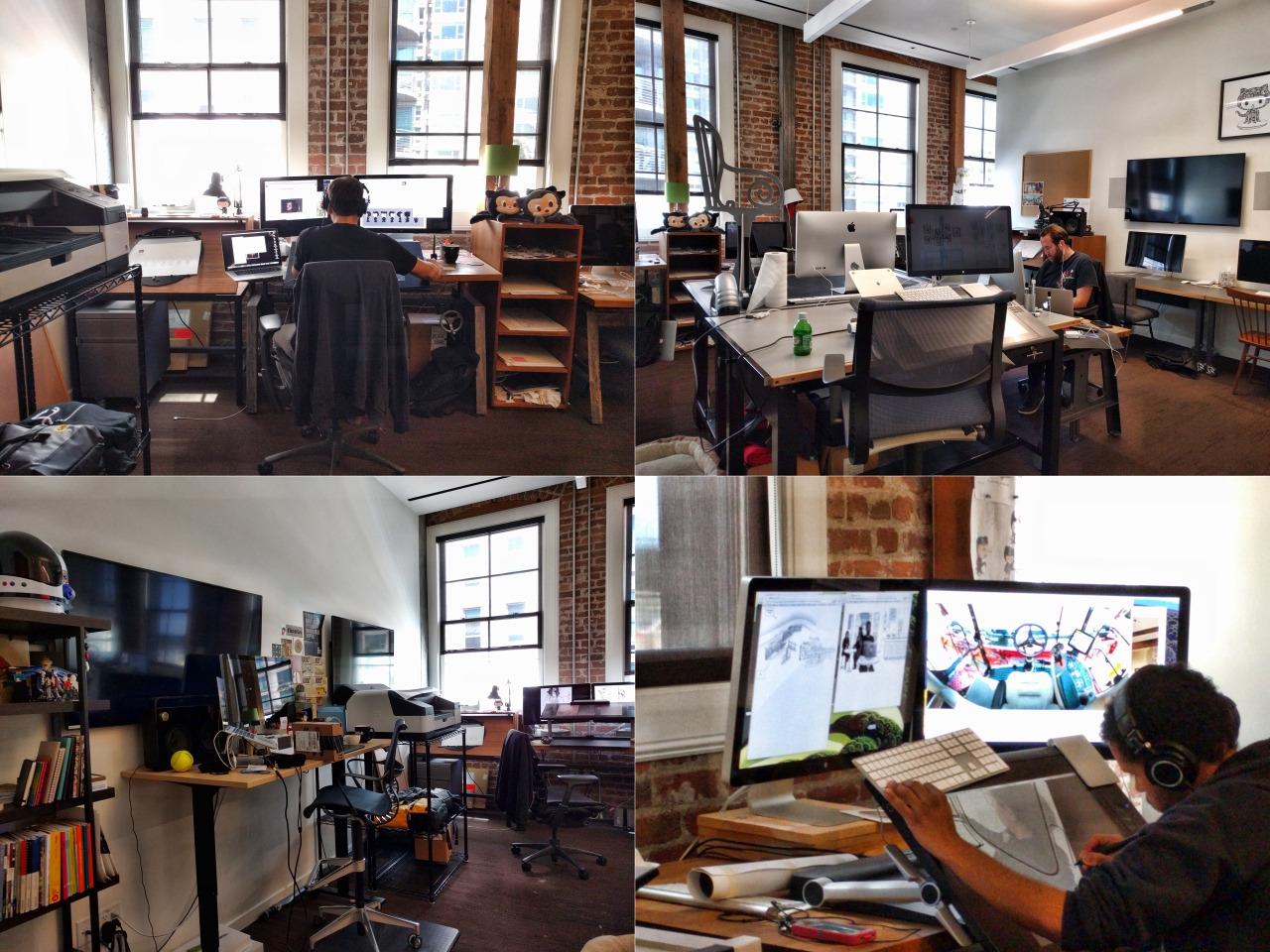 제임스: 제가 일하는 방에는 애니메이션 작업하는 사람들이 모여있고, 이쪽은 필름/비디오 작업하는 분들이 주로 이용하세요. 저흰 리모트가 워낙 많으니 작업물을 레코딩 해서 올려두고 커뮤니케이션하려고 만들어둔 공간이에요. 인터넷 마케팅 비디오 같은 것들도 많이 찍어요.