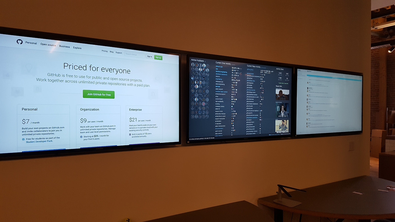 제임스: 현재 깃허브의 전체 구성원은 540명 정도예요. 회사 안에서는 약 300명 정도 근무하고 있는데, 회사가 일하는 시간을 따로 정해두지는 않아서 그중 매일 들어오는 사람들은 약 200명 정도 돼요.