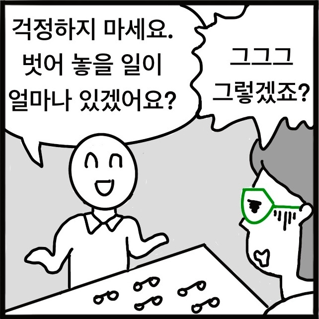 장점은 그렇다 쳐도 안경다리를 구부린 다음 클립으로 고정해 통에 넣는 게 몹시 귀찮아 보였다. 사장님은 내 불안을 읽었는지, ‘안경테를 접을 일이 좀처럼 없다, 안경을 벗을 일도 잘 없다.’며 걱정하지 말라고 했다. 그래도 오늘 써본 것 중에 디자인이 제일 마음에 들어서 그냥 하기로 했다.