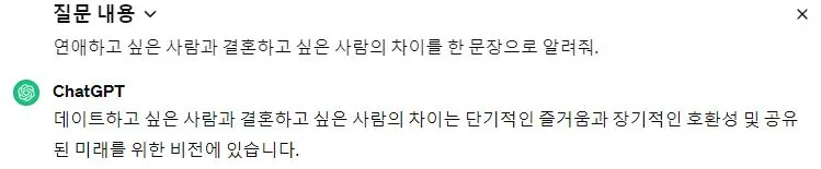 연애하고 싶은 사람, 결혼하고 싶은 사람 Chatgpt도 아는 차이