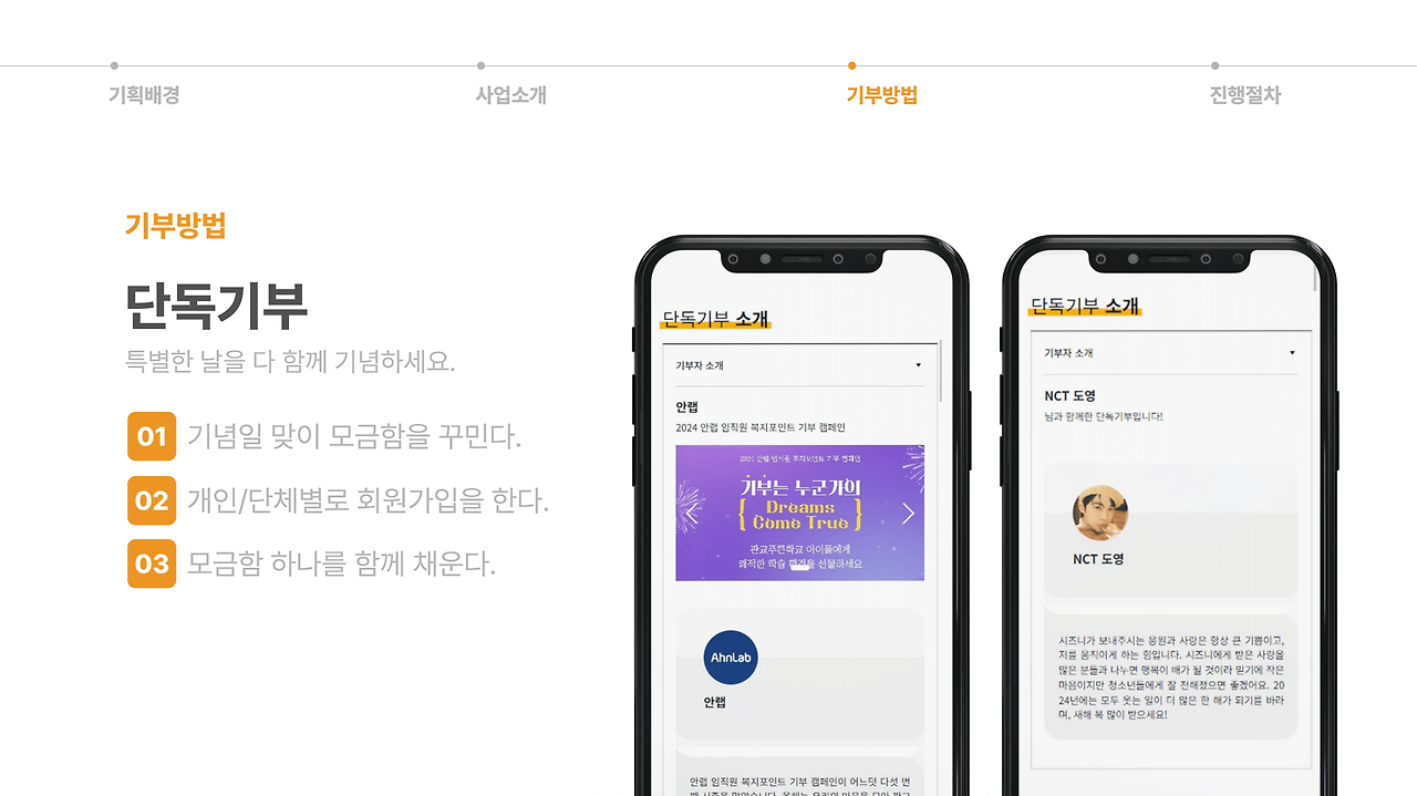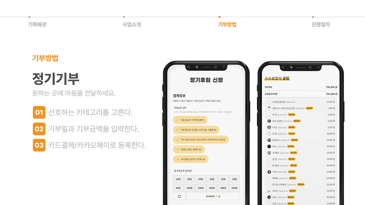 올해 임팩트기부 모금 목표는 1억 원이었다. 기부금 사이트라 단순 금액을 표기되긴 하지만, 임팩트기부의 경우 직접 html로 코딩을 해야 하고 진행과정별로 수동으로 알림을 보내야 하다 보니 생각보다 손이 많이 간다. 그렇지만 모금 업무를 하면서 사회변화에 대한 갈증은 임팩트기부로 잘 해소되고 있다. 다양한 사업팀과 파트너사분들의 열정을 보면서 많이 배운다.
