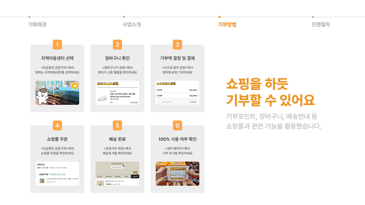 그동안 설문폼 형태로 센터/장바구니 신청을 받다가 곧장기부센터 홈페이지를 개설했다. 회원정보가 남으니까 연락하기 편하고, 그동안 수동으로 카카오톡채팅방에 작성했던 내용을 알림톡을 만들어서 진행 상태별로 사용자가 바로 알 수 있게 만들었다. AWS 클라우드 서버로 이관하면서 트래픽에 몰렸을 때 발생하던 병목화 현상은 ci세션을 안정화시키면서 많이 해결되었다. 정기기부 결제인원이 많아 자동화 로직이 오류가 생겨 1시간에 300명씩만 자동화를 시키는 것으로 분산했다. 정말 감사한 일이었다.