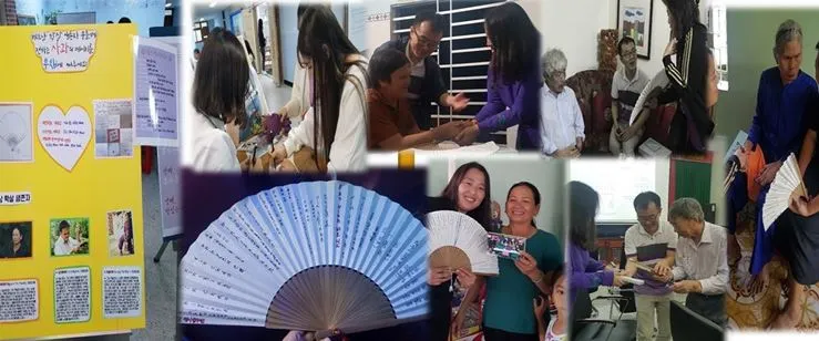 평화기행 일정은 빈호아, 퐁니퐁넛, 하미마을 등 주요 학살 장소를 가서 피해자들과 만나는 자리였다. 평화기행에 가서 직접 만나게 될 피해자의 사연을 축제 때 알리고 부채에 사죄와 평화의 메시지를 받았다. 이제 동아리 학생들은 알아서 간단한 문구들을 베트남어로 바꾸어 적어놓았다. (나중에 알았는데 틀린 말이 꽤 있었다. 외국어는 사전에 검증해보는 작업이 꼭 필요할 것 같다.) 그리고 세계적인 명성을 지닌 시인 틴탄오와 소설가 바오닌에게 줄 메시지까지 부채에 받아놓았고, 평화기행에서 직접 전달하였다.
