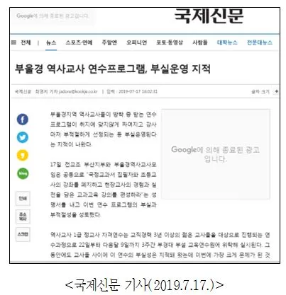 부산/울산/경남 교육청은 2019학년도 역사과 1급 정교사 자격연수 프로그램을 개선하라.